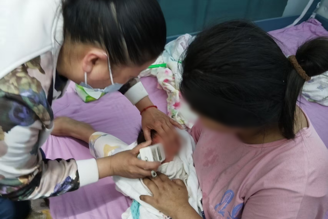 “宝宝黄疸值12.3mg/dL,需加强母乳喂养并监测变化。”产后第14天,中心护士徐厚云为北郊街道的王女士(化名)开展入户访视,携带经计量认证的黄疸检测仪为新生儿测量黄疸及新生儿脐部护理等等,赵娜医生还为剖宫产产妇检查伤口愈合情况,指导腹式呼吸训练促进子宫复旧。