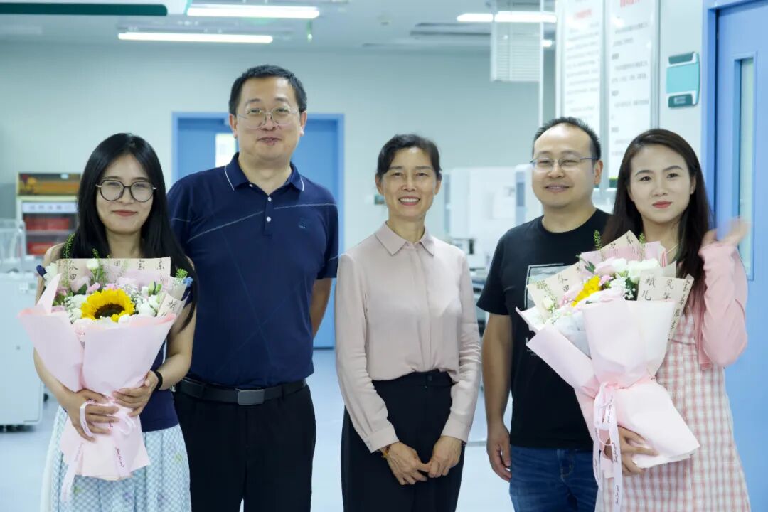 “首先让我们共祝陈琰珺、胡源纯两位同志自此扬帆起航,前程似锦!她们分别于2020年11月、2021年6月在疫情防控、核酸检测任务最为繁重的日子里相继来到科室。那时的科室房屋陈旧狭小、设施落后老化,加之等级创建迫在眉睫,诸多困难接踵而至。但她们没有退缩,直面困难,默默奉献,与科室同事们日复一日、年复一年地并肩战斗,这些感人的一幕幕如烙印般刻进了我们永恒的记忆中!”检验科主任周清秀在开场致辞中说道。“今天,你们凭借自身的勤奋与努力,成功考取了研究生,迈向更高层次的学术殿堂,希望你们志存高远、勇攀高峰,在更广阔的学术天地里,勇于探索求知、敢于挑战前沿,不断提升专业理论水平和科研创新能力。”