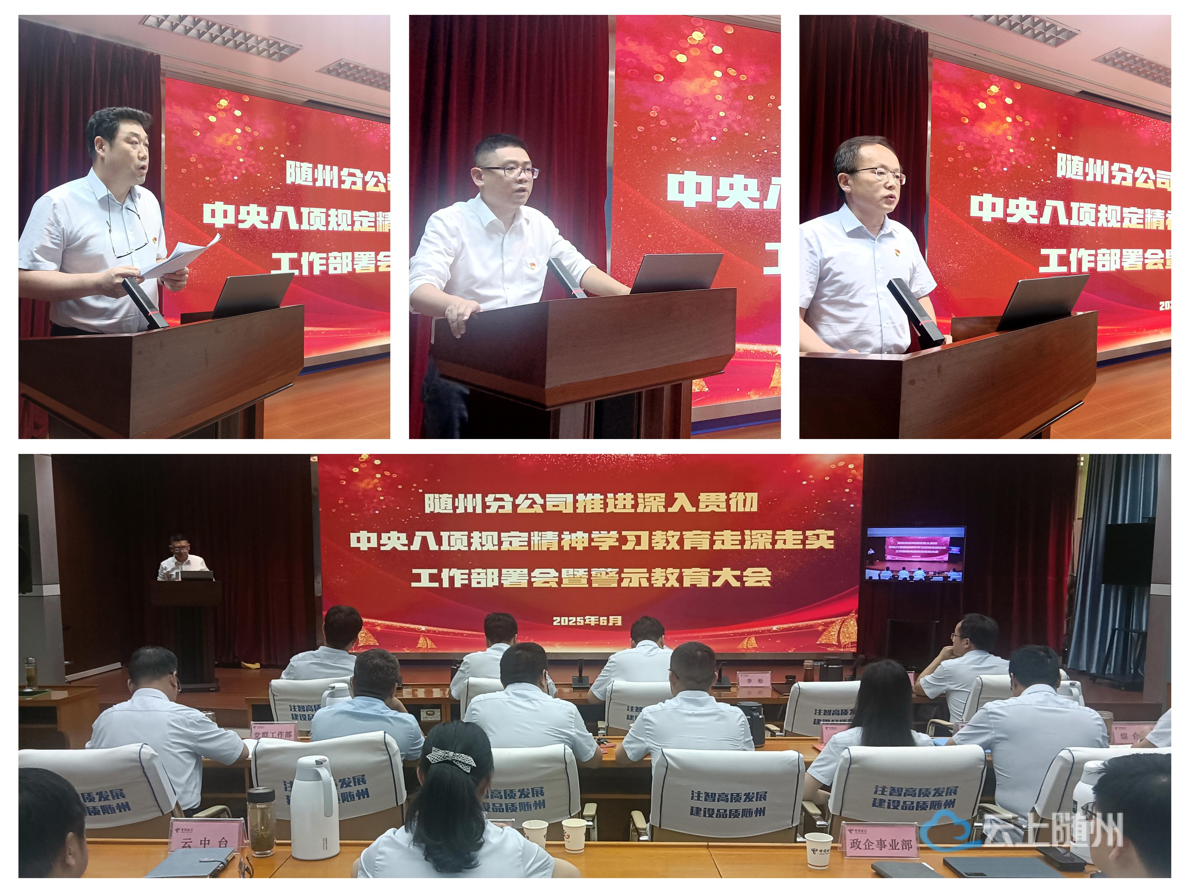 会议以现场+视频会议的形式召开,随州分公司市县两级班子成员、各单位部门主要负责人、大党建部门全体党员共计80余人参会。根据会议安排,与会人员还集中观看了警示教育片。