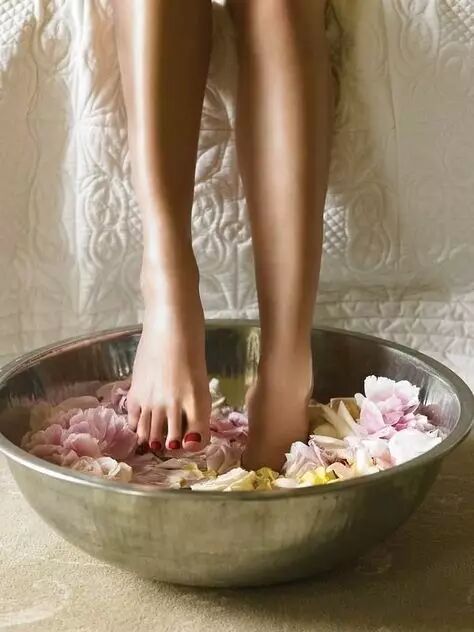 每天晚上睡觉前,把刚烧开的热水倒到盆中,然后取几片生姜放入,等待1分钟后,加入适量的醋。