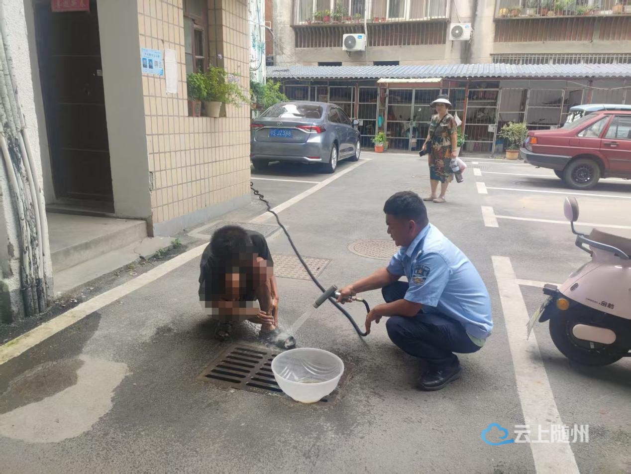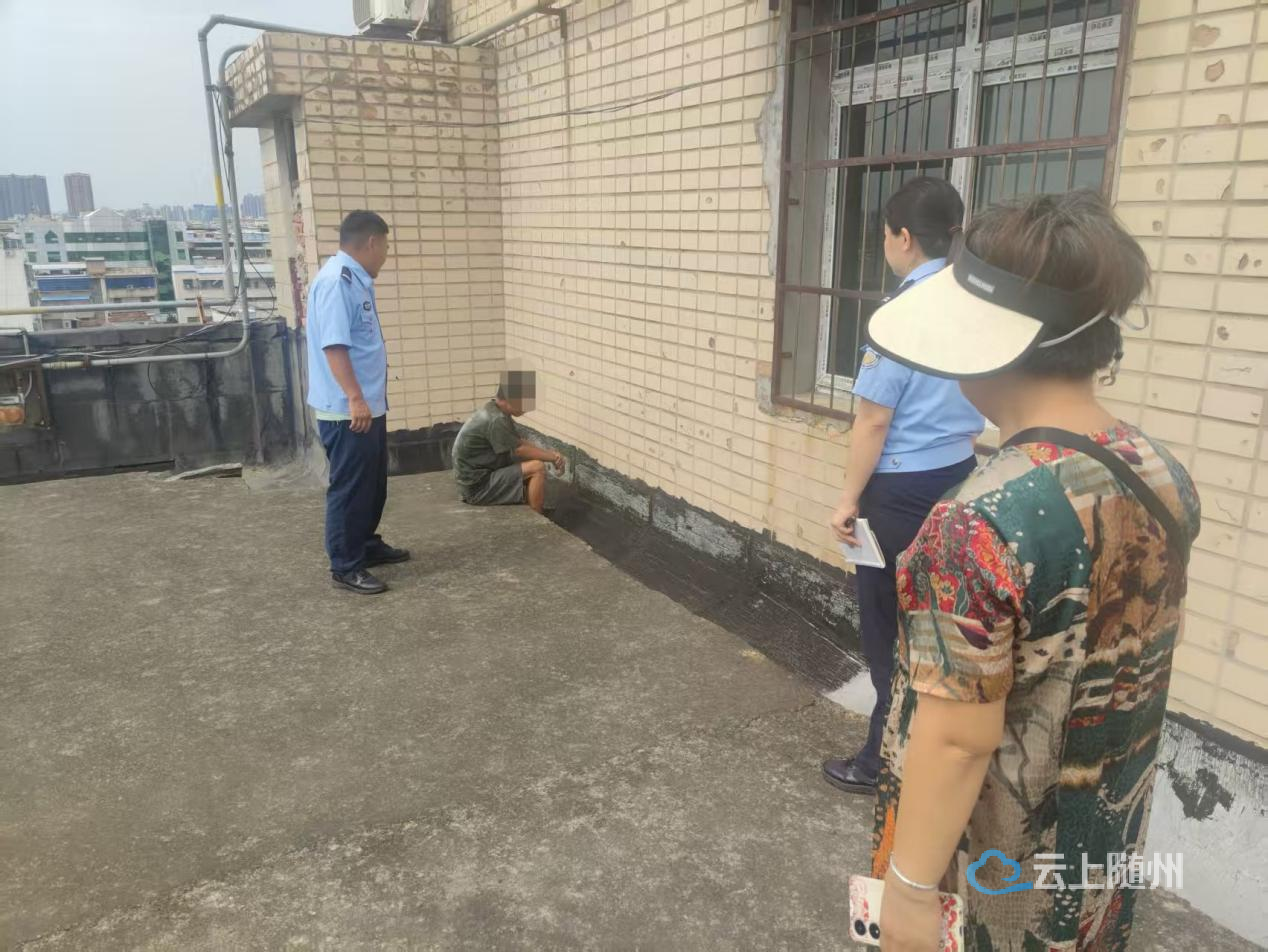 接到求助时,室外温度已超35℃。社区网格员与当值辅警携带饮用水和急救包,在热心居民指引下直奔事发楼顶。只见一名青年男子蜷缩在天台角落,衣衫沾满尘土,神情迷茫,无法正常沟通。由于楼顶无遮挡物,地面温度接近50℃,男子已有轻微脱水迹象。
