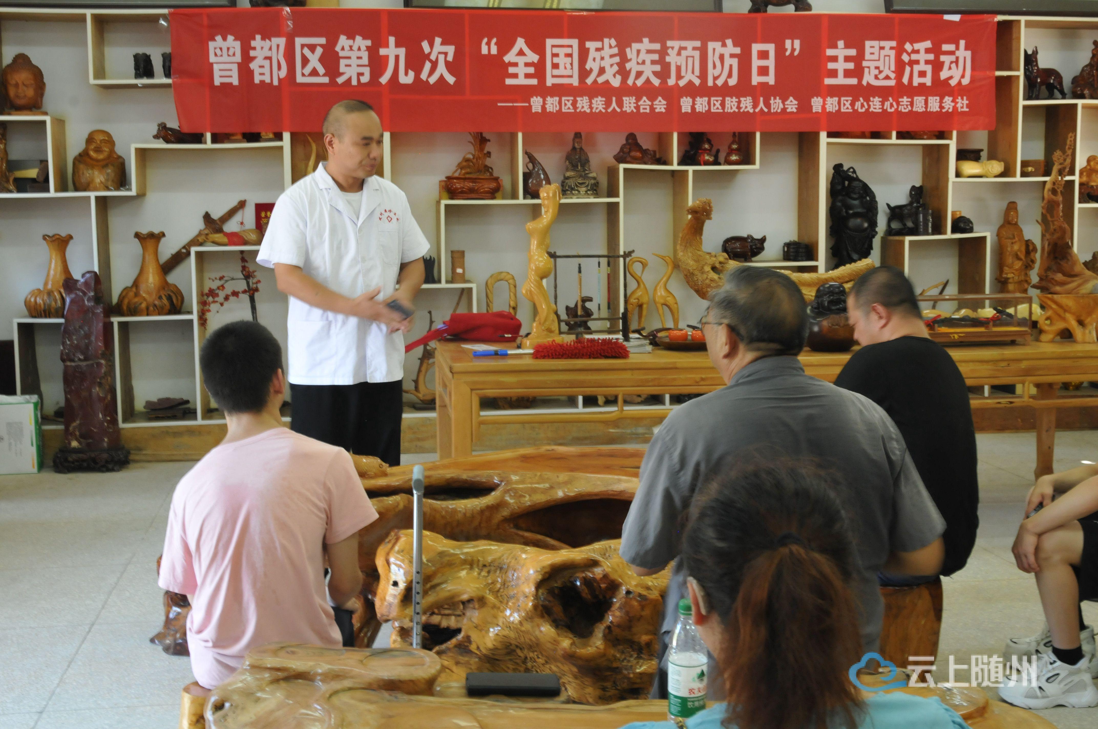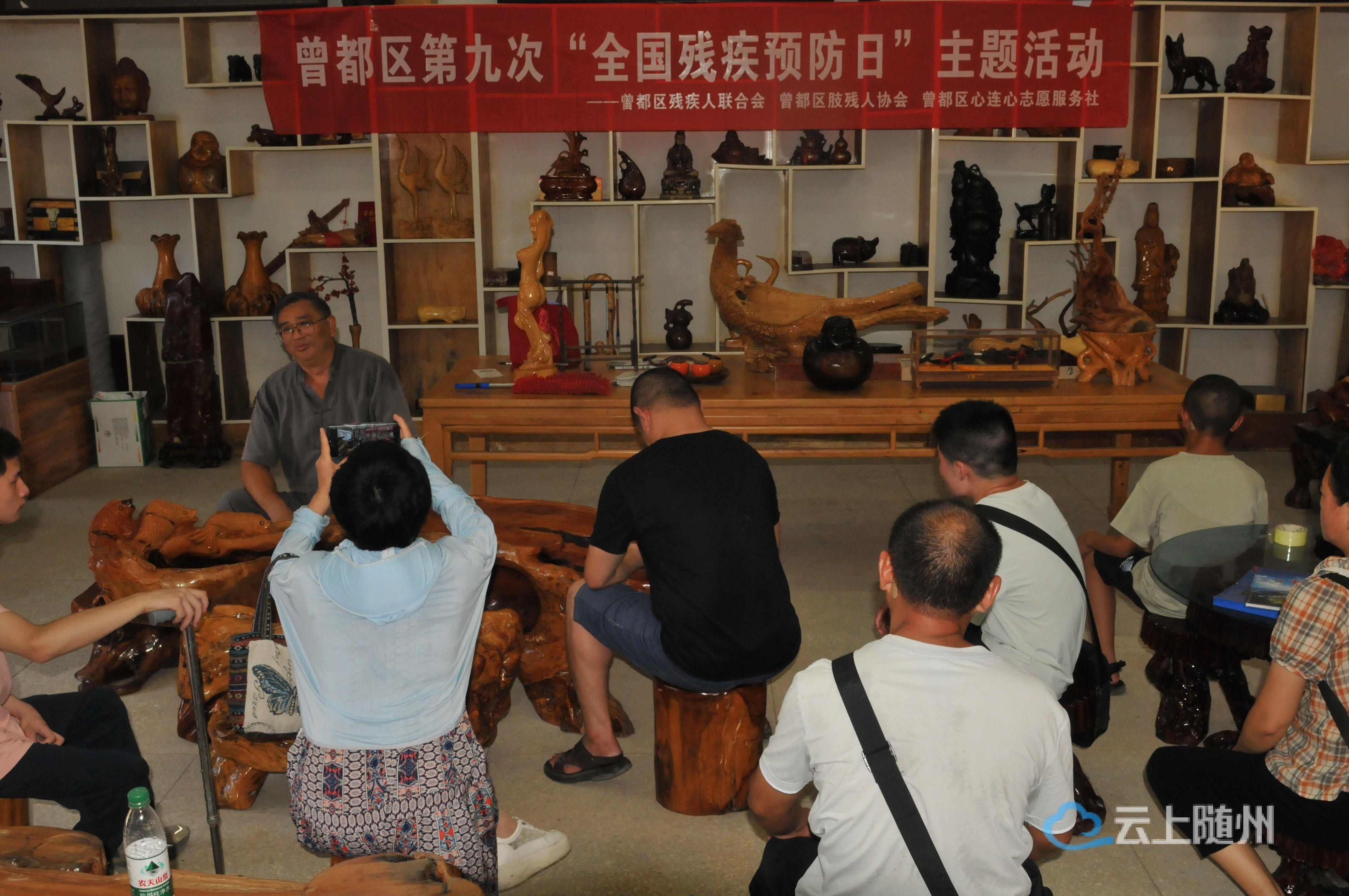 当日上午,在助残志愿者的全程协助下,曾都区40余名肢体残疾人代表前往湖北残疾人就业创业示范基地——大洪山根雕文化产业园参观学习。活动采取沉浸式文旅健康体验与社会实践相结合的形式,残疾人代表们在此感受了我市残疾人自强创业典型薛国旺创办根雕产业园的艰辛历程,领略了“择一事终一生”的创意根雕工匠精神,拓宽了文旅健康融合发展的就业创业视野。