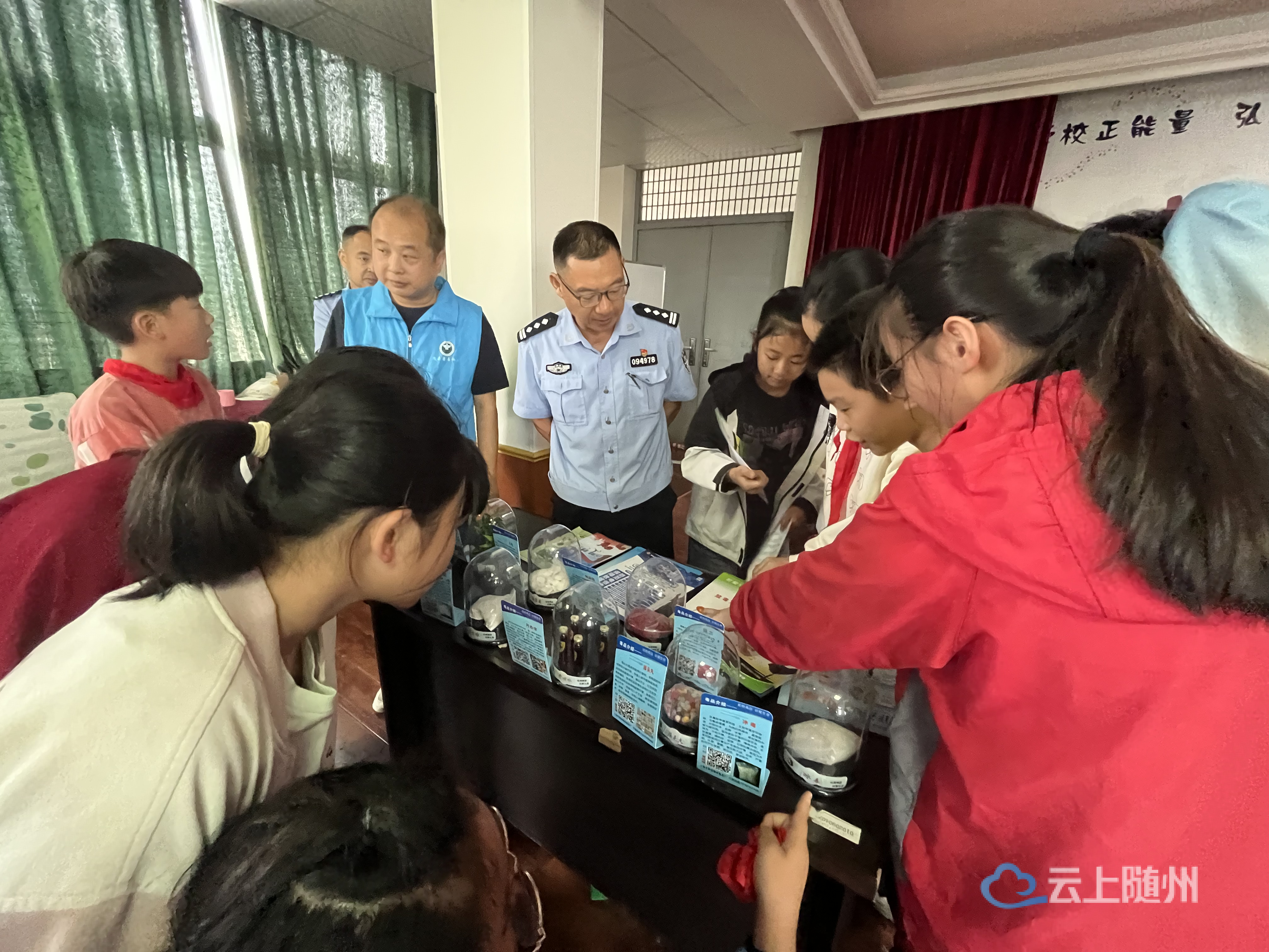 授课结束后,活动进入实践体验环节。厉山镇社区戒毒康复中心带来的毒品模型展区,吸引了同学们的目光。大家有序参观,近距离观察各类毒品模型,直观了解毒品的真实样貌。期间,同学们围绕毒品识别、危害预防等问题积极提问,厉山派出所副教导员汪成立耐心细致地逐一解答,进一步加深了学生对禁毒知识的理解。活动最后,工作人员还向学生们分发了法治宣传单,让法治宣传触角延伸至课后,助力学生将法治观念融入日常。