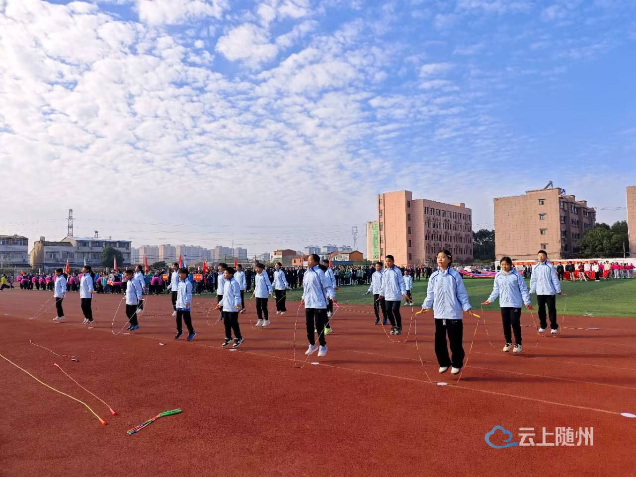 11月20日,晨光漫洒运动场,彩色跳绳随厉山学子的身影翻飞流转,为随县第四届中小学生运动会开幕式铺就活力底色。