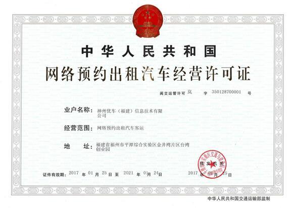 据了解,神州专车是以其运营主体公司神州优车(福建)信息技术有限公司在福建提出的申请,牌照的获批意味着,该公司成为全国首家线上服务能力获得正式认定的网约车平台。按照交通运输部等7部委最新发布的《网络预约出租汽车经营服务管理暂行办法》(简称“网约车新政”)的规定,该线上服务能力认定结果可在全国范围通用。