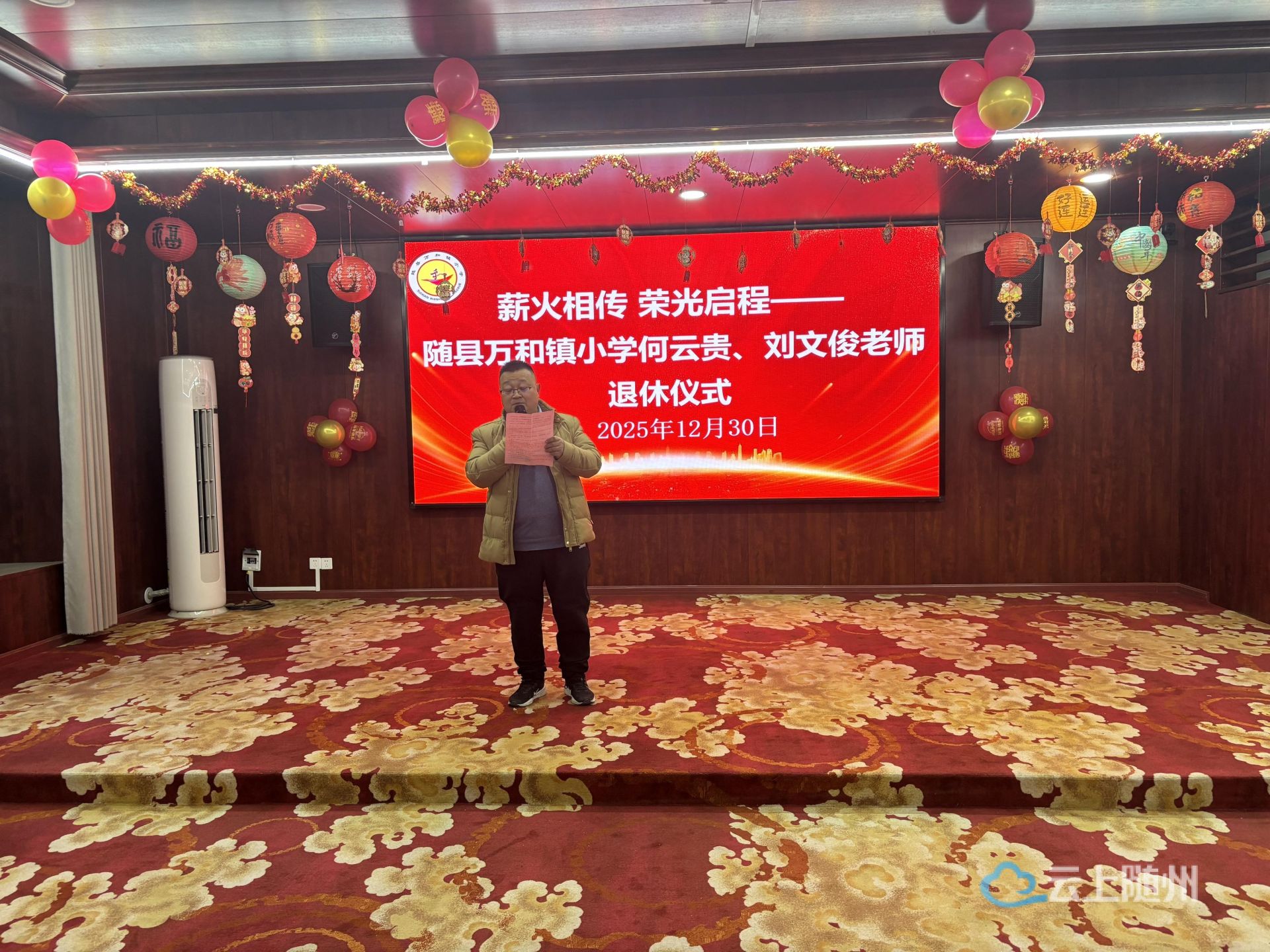 12月30日,随县万和镇小学隆重举行“薪火相传 荣光启程”退休仪式,为何云贵、刘文俊两位即将退休的老师献上最诚挚的敬意与祝福,见证他们执教生涯的圆满落幕,开启人生的崭新旅程。
