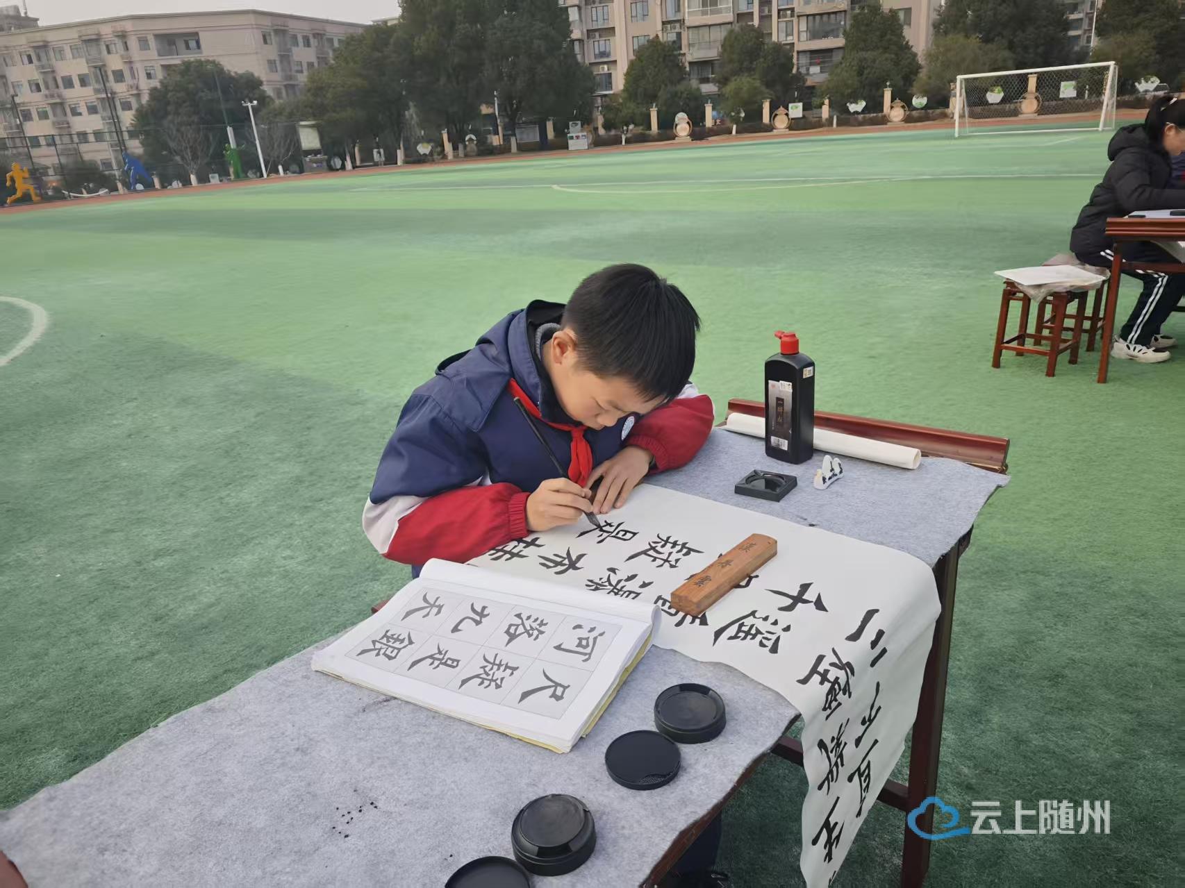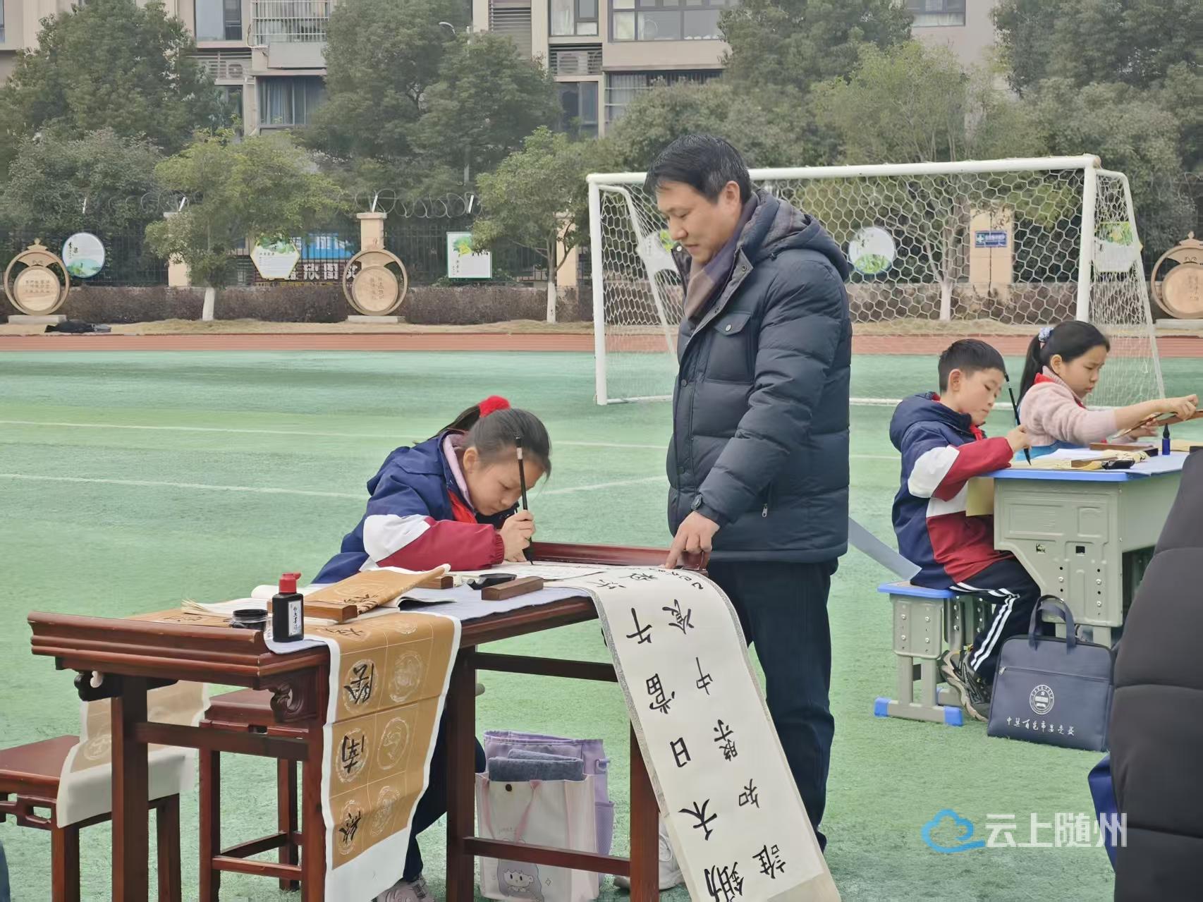 “老师们,同学们,此刻,赛场已备,翰墨已研。比赛即将拉开帷幕。最后,感谢大家的参与,预祝本次大赛取得圆满成功!祝愿每一位参赛者都能在方寸之间,展现最好的自己,收获成长与喜悦!”12月30日,伴随着校长林海艳讲话音落,白云湖小学第二届“润学杯”师生现场书写大赛正式拉开帷幕。