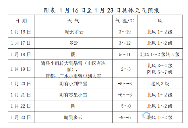 注意防范积雪和道路结冰对交通运输、农业设施及户外临时设施等的不利影响。