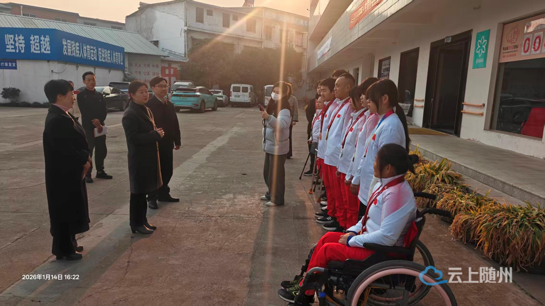 图为副市长罗兰(左三)赴残疾人体育训练基地慰问残疾人运动员代表