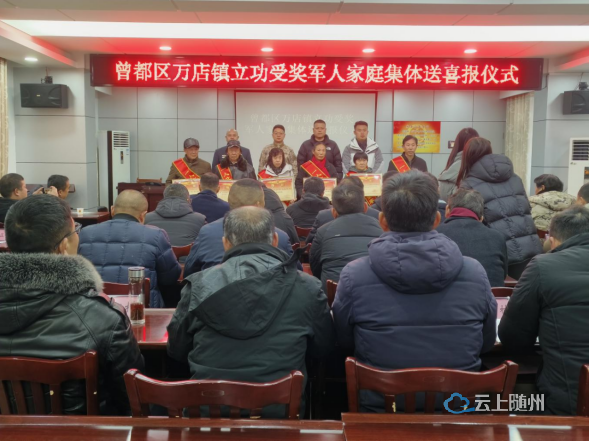 1月29日上午,在万店镇政府为万店镇立功受奖家庭集中送喜报。仪式现场气氛庄重热烈,区人武部上校政治委员魏兵现场宣读了张成、何祖亮等6名万店籍立功军人名单及优秀事迹。区退役军人事务局及万店镇相关负责人共同为军属们披上绶带、颁发立功喜报,并向他们表示衷心祝贺与崇高敬意。一份份喜报,承载着军人在部队的拼搏与奉献,也凝结着军属们在背后无私的支持与付出。
