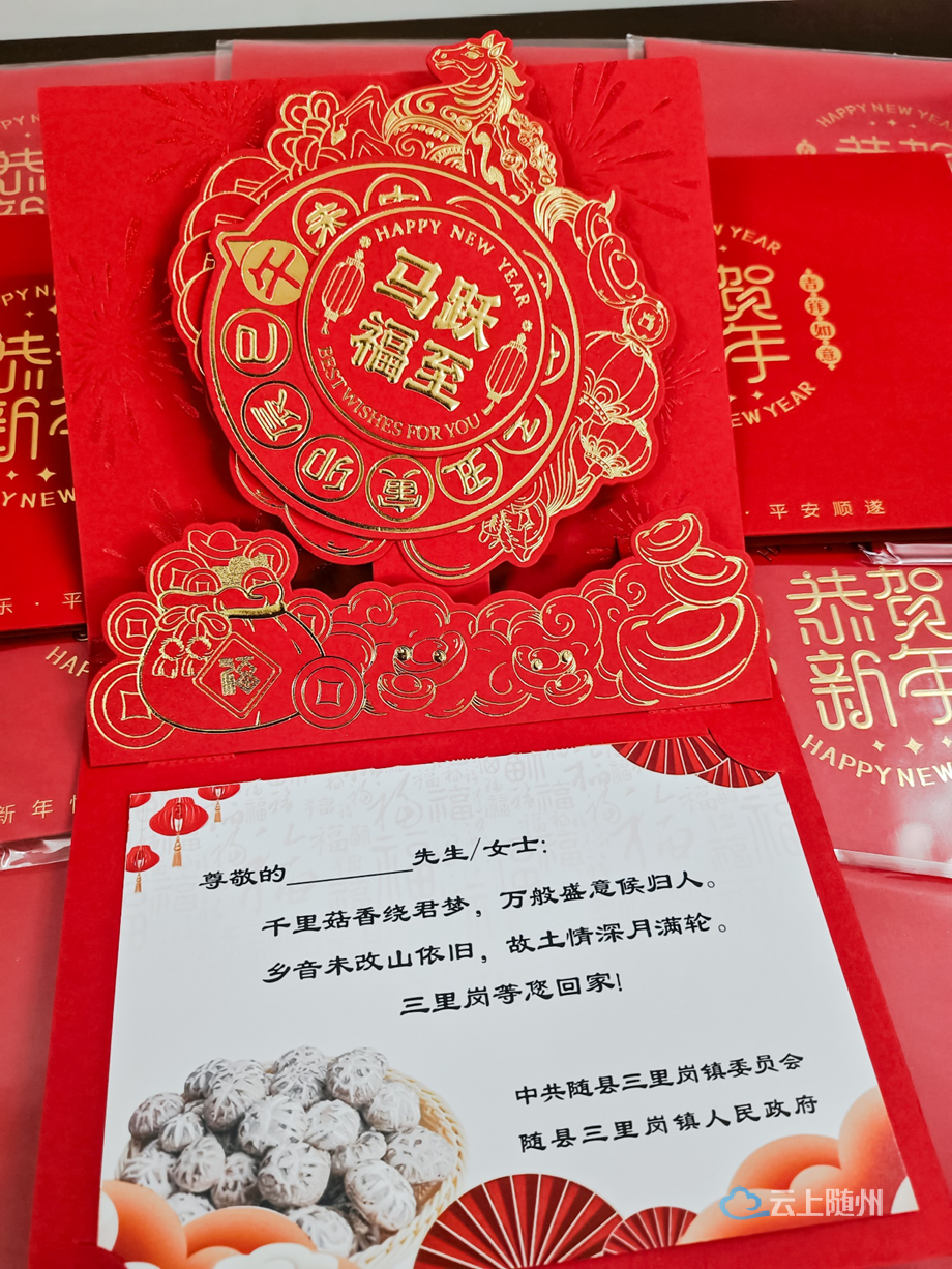 随着农历马年春节临近,湖北省随县三里岗镇处处张灯结彩,年味愈浓。在这阖家团圆、寄托祝福的传统佳节前夕,为深切表达对在外拼搏的家乡儿女及长期关心支持镇域发展的各界友人的牵挂与感谢,进一步凝聚情感纽带、汇聚发展力量,三里岗镇党委、政府近日精心组织开展了一场温情满满的新春贺卡寄送活动。