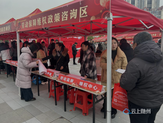2月24日上午,曾都区“春风行动暨就业援助季”专场招聘会在曾都区吾悦广场举行。劳动保障维权“一站式”服务各成员单位联动发力,开展劳动普法宣传暨专项法律服务活动,为求职劳动者送上“劳动维权大礼包”。
