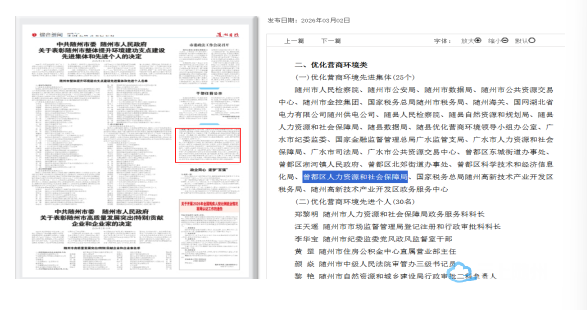 近日,曾都区人社局喜报频传,在“为您社想”服务品牌引领下,锚定“省内当先进、全市当标杆”目标,深耕人社主责主业,在优化营商环境赛道实现从“奔跑”到“领跑”的跨越,接连荣获“全国巾帼文明岗”“随州市优化营商环境先进集体”等荣誉,交出民生保障与企业发展双优答卷。
