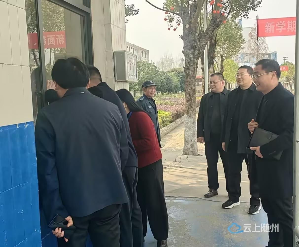 3月11日,随县教育局党委书记、局长吴靖华带队来到安居镇第三小学,实地督导校园安全、环境卫生及开学各项工作落实情况,为学校后续管理与发展精准把脉。安居镇教育党总支书记唐长松、中心学校校长胡勋陪同检查。