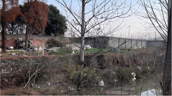 与此同时,紧邻门卫室后侧的原养猪场区域,因历史遗留问题,长期被违规占用。930平方米的狭长地带内,菜地、鸡舍、杂物间“三足鼎立”,杂草丛生、污水横流。这块紧邻河沟的“卫生死角”,不仅大煞校园风景,更潜藏着安全隐患与环境风险,成为校园环境治理中一块难啃的“硬骨头”。