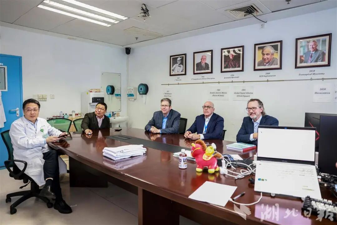 2024年5月,魏翔受邀登上梅奥讲台。会上,魏翔的发言让迪拉尼“大开眼界”,但又“很难想象”。作为沙夫的学生、采用传统开胸手术为超过2000名患者完成治疗的迪拉尼,对心肌旋切愈发好奇。今年3月10日,他专程赴武汉,一同到访的还有美国心脏病学会/美国心脏协会指南委员会主席史蒂夫·奥门教授等。