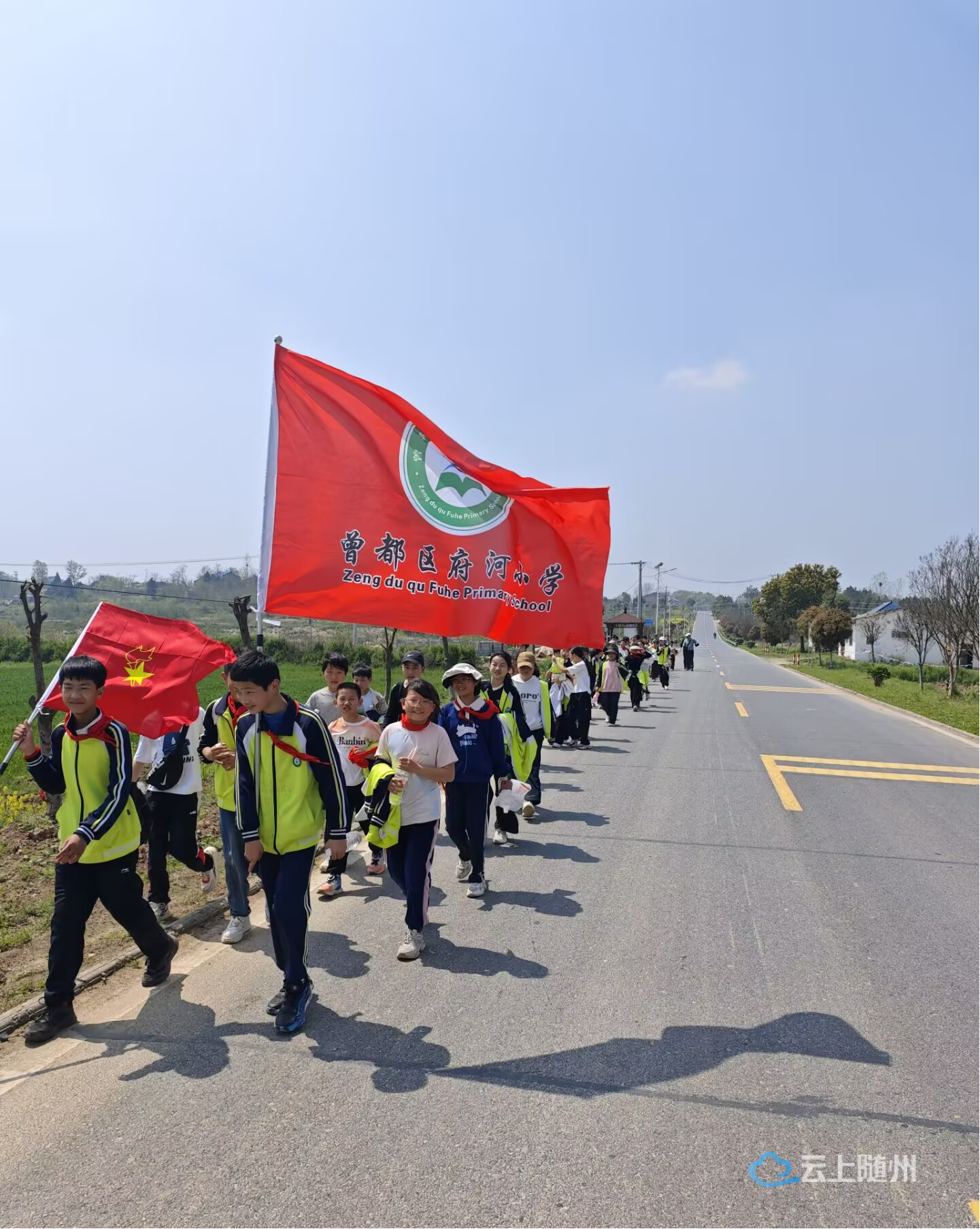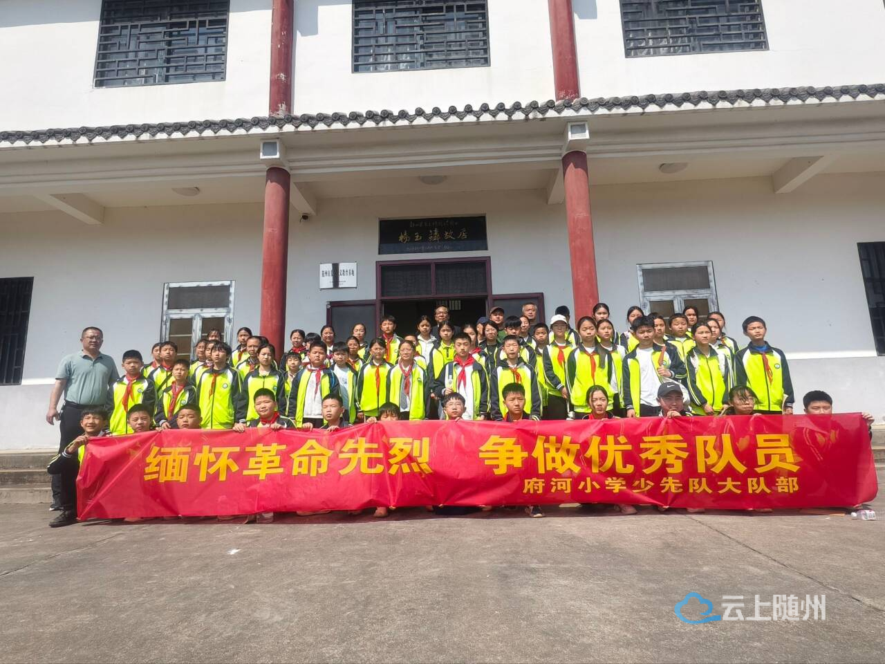 2026年4月1日,曾都区府河小学组织五、六年级60名优秀少先队员,徒步前往随州市爱国主义教育基地——杨玉麟故居,开展“清明祭英烈”扫墓暨红色教育实践活动,在庄严肃穆的仪式中追忆峥嵘岁月,厚植家国情怀。