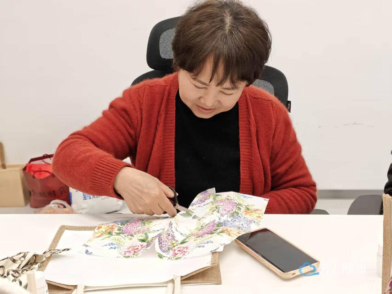 在动手制作的过程中,居民们尽情释放想象力与创造力,既锻炼了手部精细动作与专注力,也在慢下来的时光里放松了心情,拉近了邻里之间的距离。相比一次性塑料袋,手作的帆布包结实耐用、可反复使用,不仅是生活中的实用好物,更传递着绿色低碳、简约环保的生活理念,让环保意识悄然融入日常。