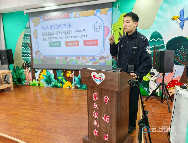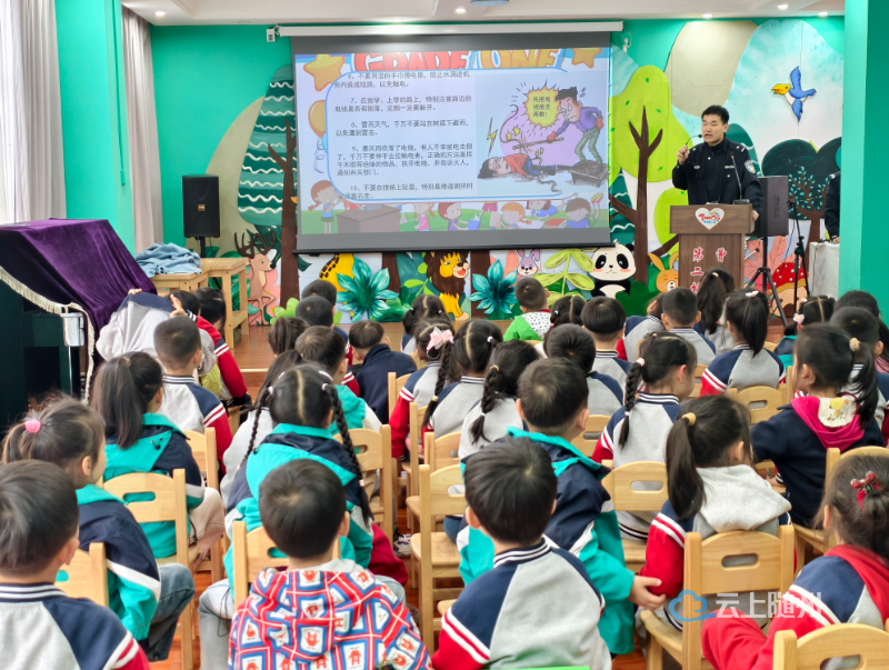 为增强幼儿的安全防范意识与自我保护能力,近日,西城派出所双龙寺社区警务室民辅警来到随州市第二幼儿园,开展了一场生动有趣的安全教育宣讲活动。