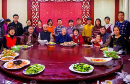今年春节,公公、婆婆、先生和我,一家人从武汉到山东阿婆家过年。一家祖孙三代,13人从事医务工作,全家一起可成一小全科医院了。团圆宴上,爱好摄影的我,给家人拍起了全家福。(李薇)