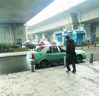 在排队过程中,不断有人前来游说王先生,去乘他们的车。“我原以为是黑车,后来发现,都是没有进站的正规出租车。”王先生说,因为排队的乘客较多,而进站的出租车并不多,他只好放弃排队往外走。