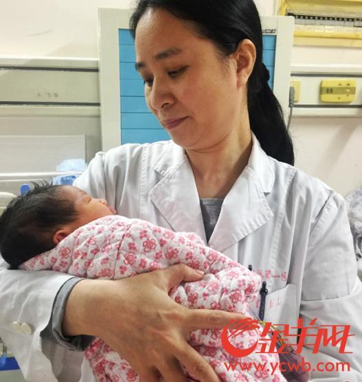 中山医的产科医生望着刚出生的“幸运宝宝” 图/金羊网记者周巍
