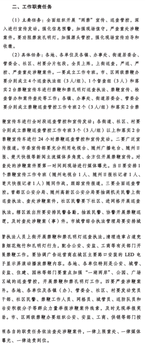 市民需要安宁和健康,请自觉遵守禁鞭禁孔明灯规定。随州市委、市政府下发了《2017年春节、元宵节期间禁止燃放烟花爆竹和孔明灯工作实施方案》的通知。根据通知要求,在2017年2月11日(正月十五)早上5:00—2017年2月12日(正月十六)凌晨2:00期间,各地、各单位以及各部门要切实做好元宵节期间随州城区禁鞭和禁孔明灯的工作,确保不发生涉鞭案件和涉孔明灯违规行为。