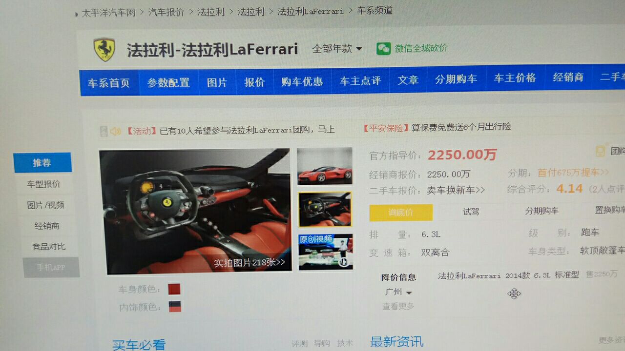 据悉,这是一辆法拉利LaFerrari,人们一般叫拉法,是法拉利的旗舰超跑,国内经销商报价2250万元。国内买这款车的总共才15人,而上月12日,武汉迎来了第一人。