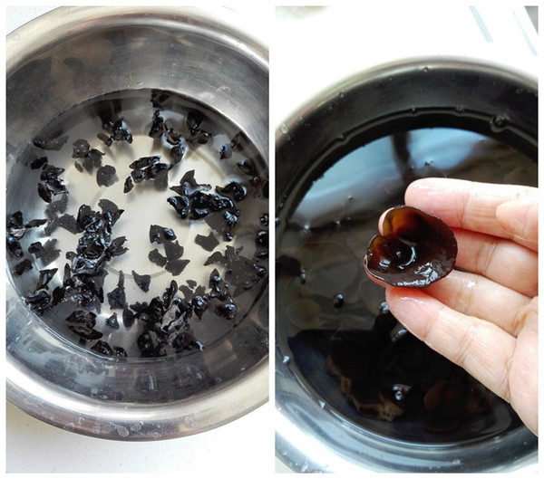1、小黑碗用水泡上,泡发后的木耳就想一个小碗一样,最好泡发一夜,时间尝一点泡发效果更好
