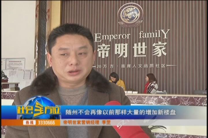 【采访】帝明世家营销经理 李罡:随州这两年一五年一六年政府的棚户区改造去库存效果非常明显,消化了随州很多楼盘的房源,第二大城市限购也促使很多返乡置业群体回家置业买房,第三个方面,经过一五年一六年房地产的调整,很多开发商对地产开发会更加谨慎,随州不会再像以前那样大量的增加新楼盘,新增的楼盘数量会很少,这样的话供求关系会慢慢发生变化,所以我个人预计2017年随州的房价会小幅上涨。
