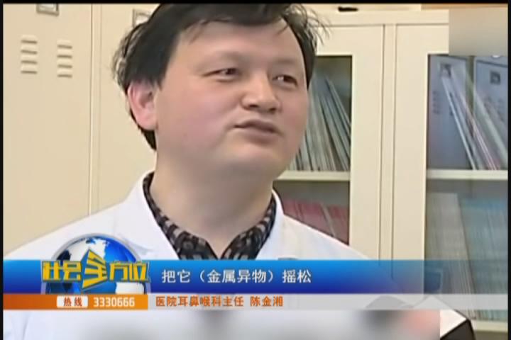 【采访】江阴市人民医院耳鼻喉科主任 陈金湘 我是上下左右,把它(金属异物)挺松,幅度不能大,太大了以后就会损伤颈内动脉。