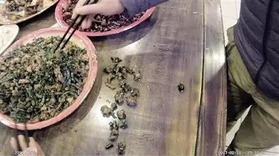 大家也开始怀疑起来,于是开始在盘子里找问题,“你们看,这算不算鸡爪,怎么有这么多个鸡爪。”王先生和朋友在他们所用的渣碟里,竟然找出了10个鸡爪的碎骨。虽然这些鸡爪被切碎,但可以明显的看出鸡爪的颜色都有几种。