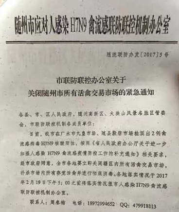 随州市应对人感染H7N9禽流感联防联控机制办公室