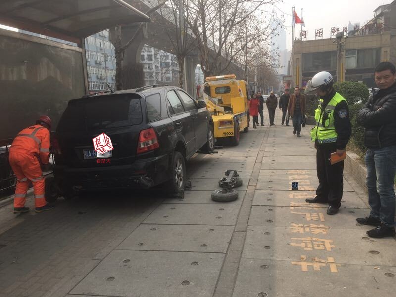 2月18日上午,硚口区交通大队民警张泉、辅警郭军在辖区巡逻,对遇到的交通拥堵进行实时排堵。中午12时,当巡逻到京汉大道崇仁路至利济北路路段的华昌大厦门前时,只见公交站牌后面的人行道上有一辆车牌号为“鄂AR**22”的国产黑色轿车违停,给市民出行带来了不便。