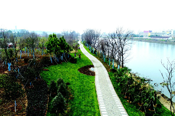 市城投公司加紧打造和完善“一轴一环三片”绿色生态格局。图为正在建设中的涢水河两岸风光带。该项目东起涢水一桥西至涢水二桥。