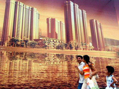 资料图片:市民从厦门市区一大型楼盘广告前走过。新华社记者 张国俊摄