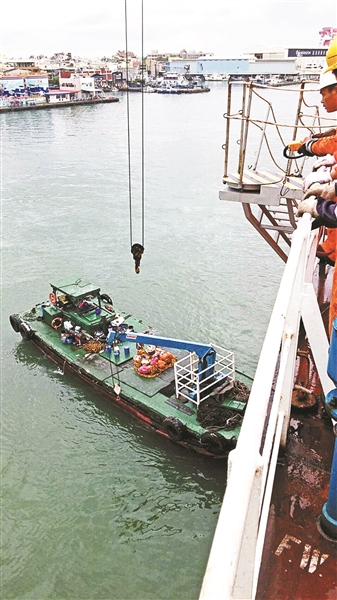 高雄船员工会向“五星北京”运送食物供图/高雄船员工会