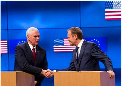 6)美国副总统彭斯上任后首次欧洲行遇假国旗尴尬,多了一颗星;