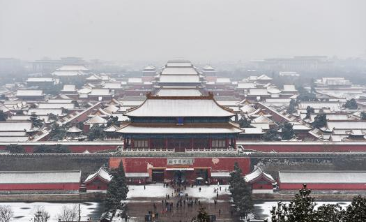 图为雪中的故宫博物院。中新网记者 金硕 摄