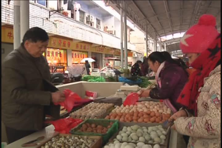 【采访】黄老板:是不是春上的鸡蛋不好卖?好卖,正是旺季的时候,我们年年从正月一开始就是旺季,一直到10月份为止。今年不是很好?今年没有人买,特别最近三天,就没人要。 十年来最低,这个鸡蛋十年来没低于10角,今年卖6角,买多点,要是大的批量买还可以便宜,别人买100个5角5,甚至5角都卖。 正常时候像我这三黄鸡蛋一天最少要销500个,土鸡蛋要销400多个,那个鸡蛋销一二十多斤。现在呢?现在一落千丈就没有人买。