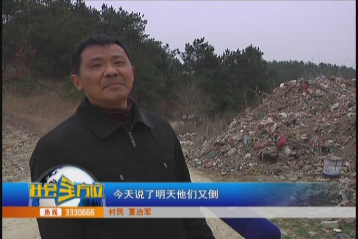 (采访:村民 夏治军)我们当地老百姓反对,不让他们在这里倒垃圾,但是我们人少了,今天说了明天他们又倒,第三天再来倒,你碰不到他们。