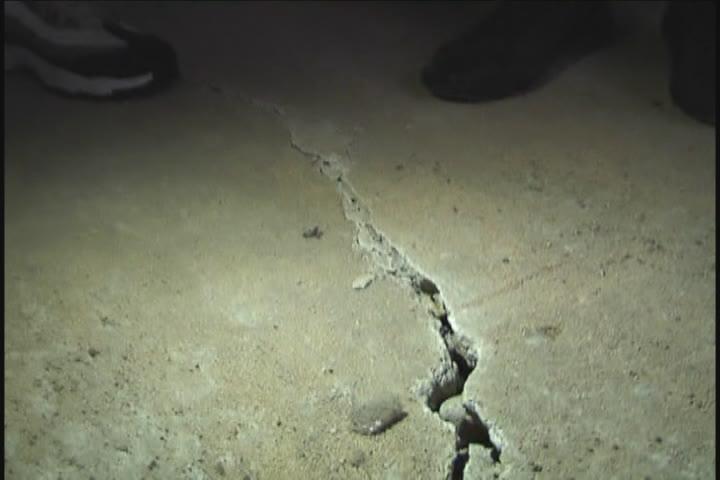 除了这个房间,其他房间的地面虽然没塌陷,但人走在水泥地面上,用脚一踏会感到下面是空洞的。