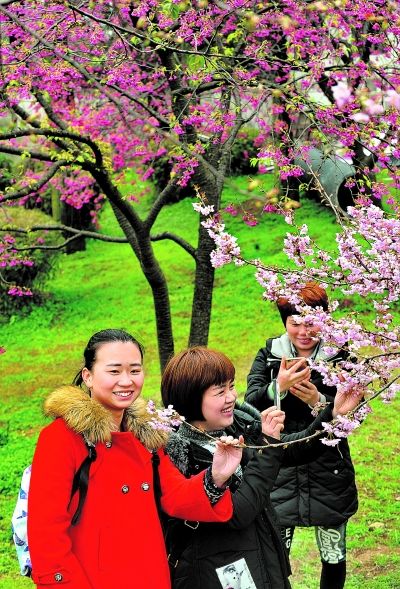 今年还出现了梅樱同赏盛景。梅樱同赏,是指梅花中晚花品种与樱花的早花品种同期开放。反常的气温使冬梅迟开,花期延长,东湖梅园的“梅祖宗”——800年的古梅品种是美人梅,属晚花品种,目前正在盛放,花期可延续到3月中旬。市民可持东湖年票,不限时不限次进入梅园、樱园赏花。