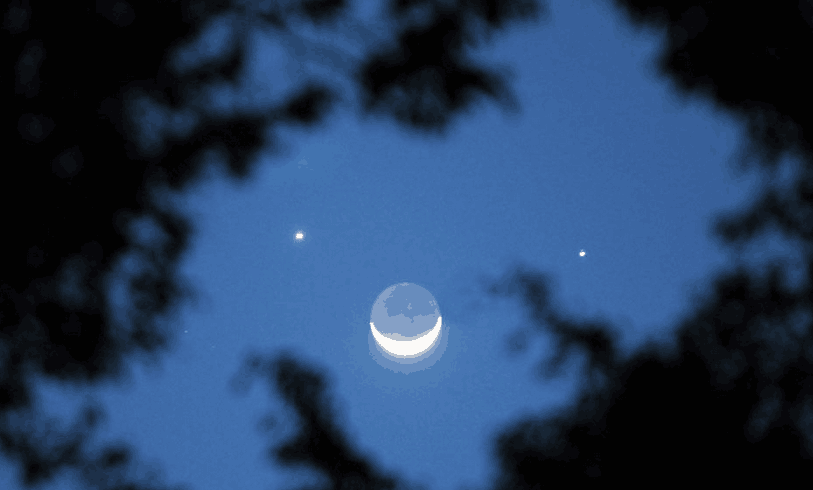 月亮、金星和火星是距离地球最近的三颗天体。金星是距离地球最近的内行星,火星是距离地球最近的外行星。近日,金星与火星相距较近,火星在金星的东面。农历二月初一(朔)以后,新月由西向东逼近金星和火星。3月1日(农历二月初四)晚上,弯弯的娥眉月来到金星和火星的近旁,三天体构成一个近似等腰三角形,顶角在月亮处。届时,金星在月亮的西北面,火星在月亮的东北面,形成名副其实的双星伴月天象。这三天体也将构成一张“笑脸”。金星和火星恰似一双“眼睛”,一亮一暗、一大一小、一白一红,十分奇趣。