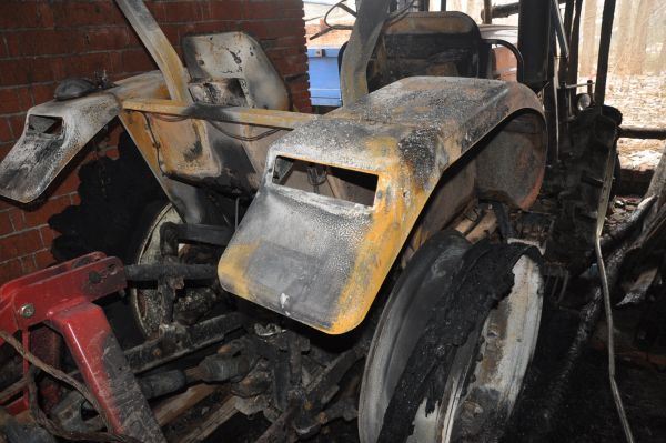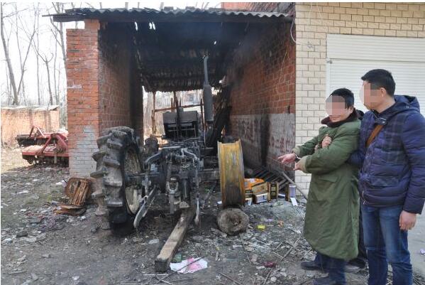 2月5日(正月初九)晚23时左右,又接到均川镇周家畈村村民文某报警,称其住房侧边停放的一台旋耕机被烧毁,现场遗留有两个塑料油壶。