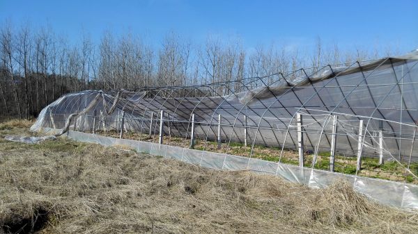 就在昨天,随州安利达生态农业有限公司的塑料大棚被掀翻32个,钢架空心管弯曲变形,薄膜裂开,损失金额约70万元!