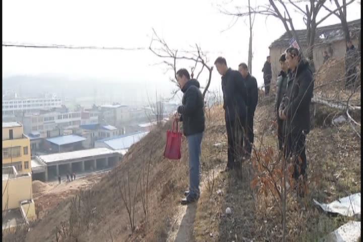 (图为县领导及地质专家一起察看滑坡险情及其危及范围的相关情况)
