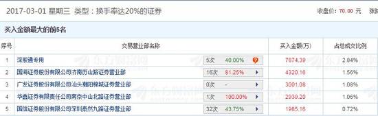 根据龙虎榜数据,国海证券济南历山路营业部从2月24日吃进顺丰控股,2月24日至3月1日间,先后买入5521.32万元、7894.9万元、2672.67万元、4320.16万元,累计买入2.04亿元;自2月27日开始,该营业部开启卖出操作,最近三个交易日分别卖出4976.11万元、7307.35万元、5366.98万元,累计卖出1.77亿元。