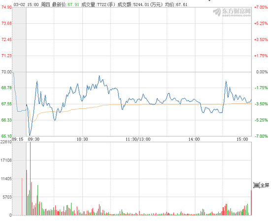 顺丰控股今日回调明显,截至收盘报价67.91元,跌幅2.99%,总市值2841亿元,与昨日收盘时的数据相比,顺丰控股的市值一天蒸发88亿元。