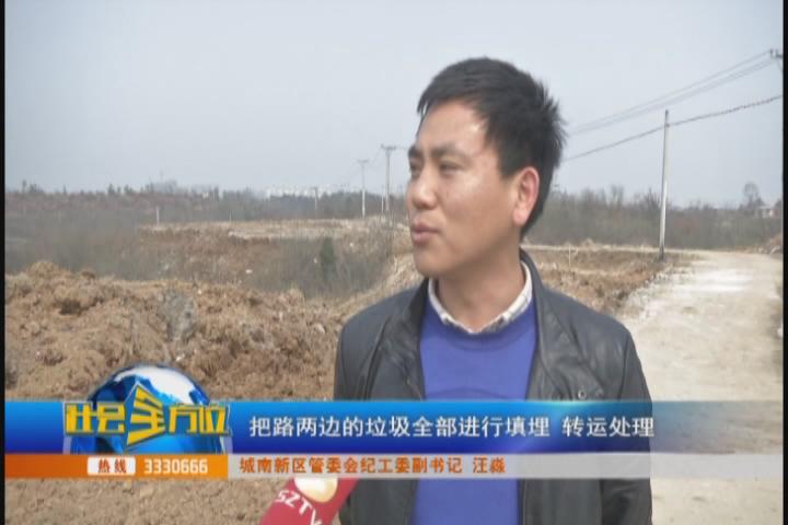 在之前的节目中,本栏目记者来到了编钟大道往涢水社区风光村方向的一条小路上,只见沿着道路一公里左右的距离里,到处都堆满了建筑垃圾,白茫茫一片,俨然已经形成了一个垃圾场。经本栏目报道,这条路上垃圾随意堆放的情况引起了相关部门的重视,近期,记者再次来到这一路段时,只见挖掘机正在作业,对道路两旁的垃圾进行清运、填埋。城南新区管委会工作人员告诉记者,他们在了解了这一路段的垃圾堆放情况之后,便立即展开了对垃圾的清理工作。